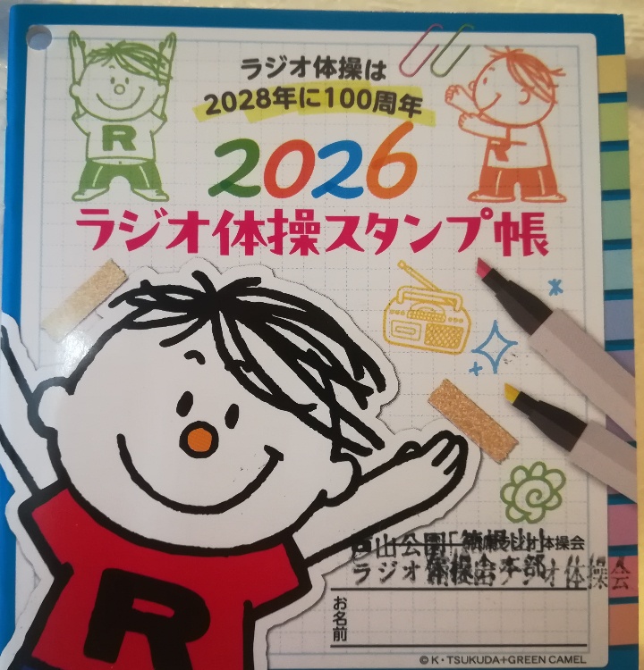 来年度の「2026年ラジオ体操スタンプ帳」が届きましたよ!! 1年分のカレンダー風のスタンプ帳です。※毎日がんばって休まずラジオ体操に参加したら、うれしいプレゼントは賞状と商品券、株式優待券1万円以上の券が有りますよ。御自分の健康の為の体操です。尚、根性、ファイト!賞状はラジオ体操ペンダントも有ります。イベントは四季に合わせて年4回有ります。御自分の健康の為の体操です。8年度はこの新しい件にチャレンジしてみたいと思っているあなた、ぜひ一緒に体操をやってみましょう!!応援します。8年度は何人、皆勤賞を取る人がいるのかナ?大変楽しみです。雨にも、風にも、雪にも、何事にも負けず根性のある人!老若男女、大歓迎です。「ファイト!」を合言葉にして私は超、超多忙ですが年中無休、雨天決行、一切無料で待っていま~す。